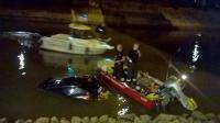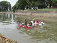 A folyószakaszt a rocsóról csáklya segítségével vizsgálták át, később a rendőrség segítségét kérték, akik hajójukkal és az azon lévő radarral is segítették a keresést. Mivel több órás kutatás után még nem került elő az elsüllyedt jármű, a tűzoltók búvárt kértek a helyszínre, akik rövidesen megérkeztek, s így egy búvár is lemerült a folyóba.