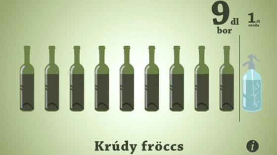 Krúdy-fröccs: 9 dl bor 1 dl szódával. Az ötletgazda, Krúdy szavaival élve, az egy deci szóda csak "megvicceli" a bort.