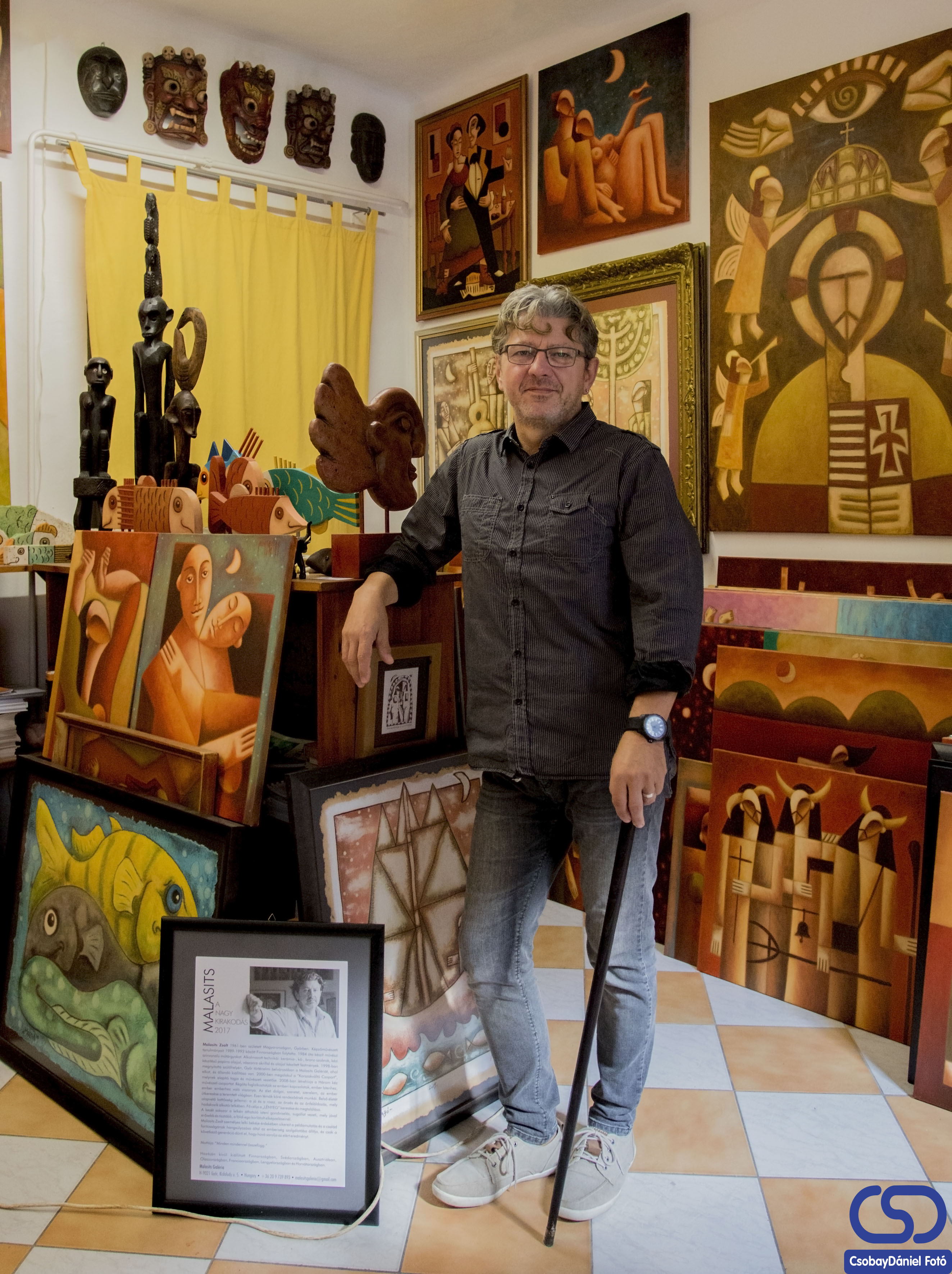 Elsőként Malasits Zsolt festőművész galériájában jártam, ahol különleges, látványos alkotásaival találkoztam és kis alkotóhelyiségébe is bepillantottam.