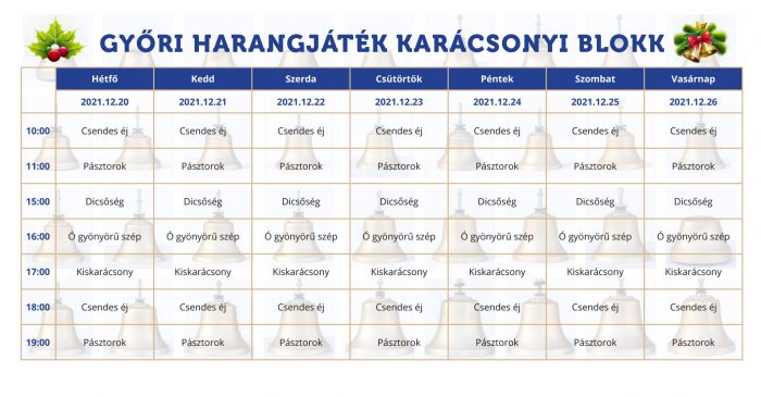 A hér elején megszólaltak a győri Városháza harangjai, melyek egészen december 26-ig szinte minden egész órában karácsonyi dallamokkal teszik még meghittebbé az ünnepi időszakot.