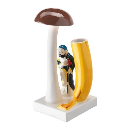 „Mázas és kezeletlen porcelán kombinálásával szerettem volna különböző, néhol matt, néhol csillogó színvariációkat létrehozni. Gyakran dolgozom növényekkel és állatokkal, azonban ez lett a kollekció legfurcsább darabja. Egyszerűen nem tudom megfejteni, hogy a férfi miért emeli fel a térdét és bámul a gombára. Esetleg jógagyakorlatokat végez? Meg fogja rúgni a gombát? Ez a jelenet talán a vihar előtti csendet ábrázolja.” Ez egyébként egy váza és valahol szerintem az abszurditásában van a szerethetősége, én minél tovább nézem, egyre jobban szeretnék egy ilyet.