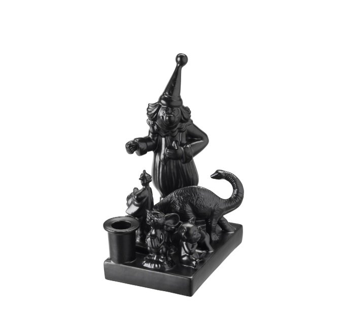 „A munkáim sokszor nyersek, komikusak és meghökkentőek, mégis könnyű őket megszeretni. Egy kerámiagyárban találtam rá ezekre az apró figurákra, majd kombináltam őket. A célom az volt, hogy egy szórakoztató és harmonikus keveréket hozzak létre belőlük. Játékosak, de kicsit ijesztőek is, ki tudja, hogy mi történik velük lámpaoltás után. Vajon életre kelnek?” Erről a tárgyról, az jutott eszembe, amikor szülőházamban egy nem használt fürdőszobában a papírsárkányom volt, ezért mindig is féltem bemenni. Valószínűleg ez a bohóc is hasonló érzelmeket válthat ki egy gyerekből.