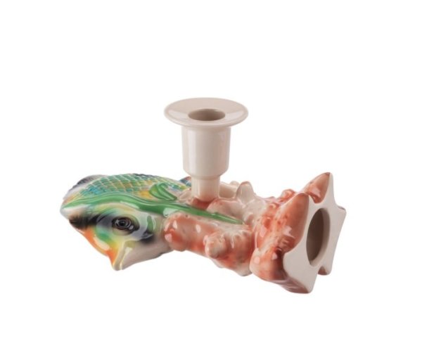 „Nehéz nem gondolni az óceánok egyre csökkenő halállományára vagy a pusztuló korallzátonyokra, ha rápillantunk erre a gyertyatartóra. De pontosan ez a lényeg, sokszor ösztönösen cselekszem és csak a munka végeztével látom meg az adott termék teljes kontextusát. Az, hogy a gyertyatartóra meglepő módon egy hal került, nálam teljesen természetes.” Szerintem ennek a halnak a jelentése igazán fontos dolgokat hordoz magával, az már más kérdés, hogy otthonunkban helyet adnánk-e neki?