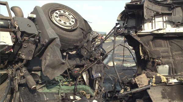 Stolczenberger Klára megyei katasztrófavédelmi szóvivő elmondta, a balesetben több kamion ütközött össze, három ember megsérült, a helyszínre mentőhelikopter érkezett. A Budapest felé vezető oldalon pályazárra lehet számítani, de torlódás várható a Győr felé vezető oldalon is, mert a kamionokat mentő daru működéséhez meg kell állítani a forgalmat. A lezárt szakaszt az 1-es úton lehet kikerülni.