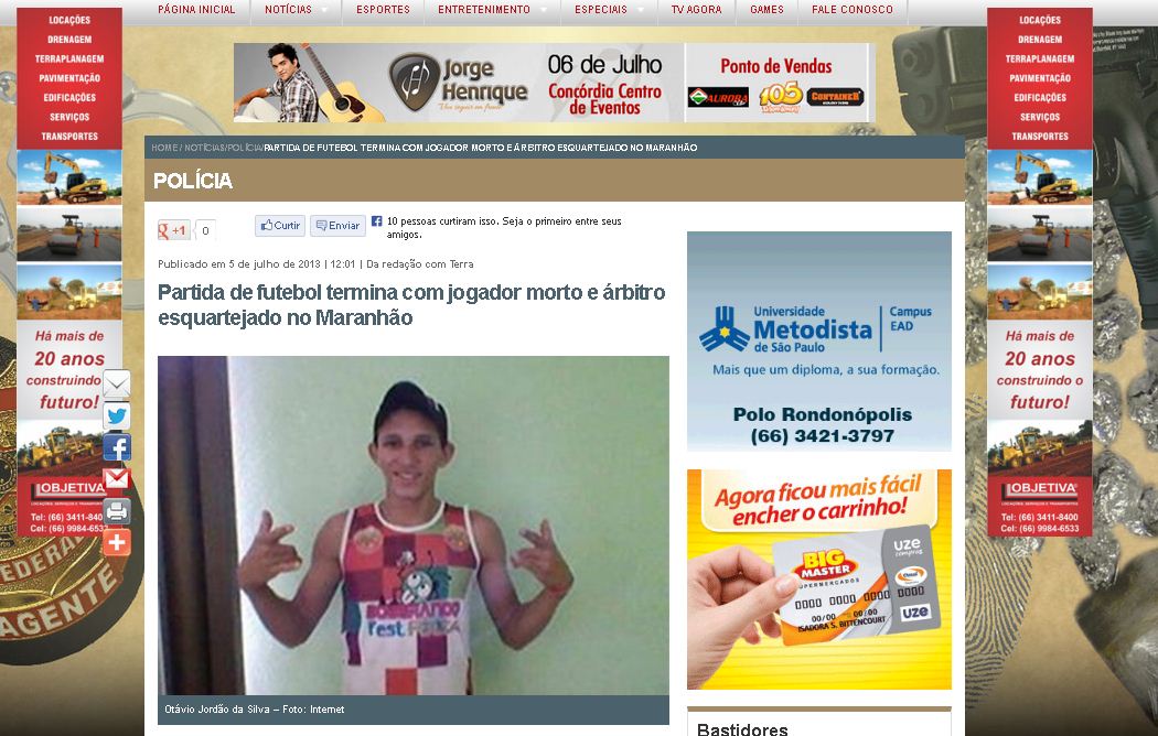 Az egyik áldozat Josemir Santos Abreu volt, aki játékosként vett részt a mérkőzésen. A másik áldozat, Otávio Jordao da Silva volt, aki a mérkőzést vezette. A 31, illetve 20 éves két férfi egymásnak esett, ami késelésbe fulladt. A 20 éves játékvezető halálosan megsebesítette a 31 éves férfit.
