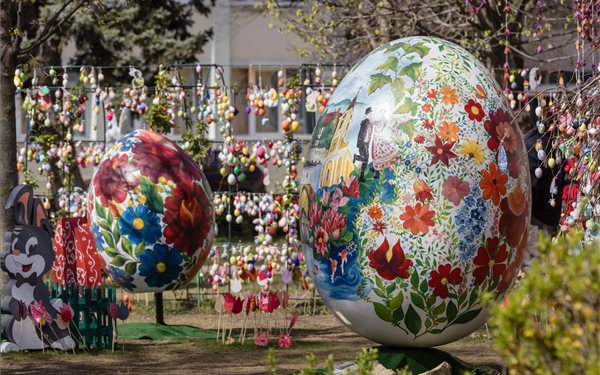 Húsvéti dekoráció a tapolcai tojásparkban.