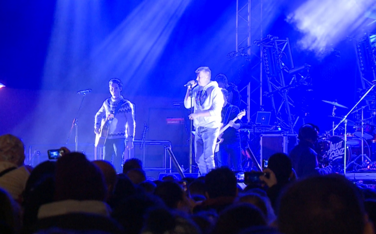 A nyirkos időjárás ellenére is megtelt a Dunakapu tér szombat este.