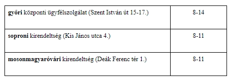 A csornai NAV-ablak (Szent István tér 22.) nyitvatartása a kormányablak ügyfélfogadásához igazodik: 2022. március 25-én 8-12 óra, március 26-án 8-14 óra.