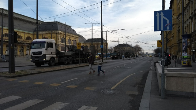 Hol máshol és mikor máskor lenne megfelelőbb katonai lövegeket szállítani, mint kedden délelőtt Rákóczi úton szirénázva.