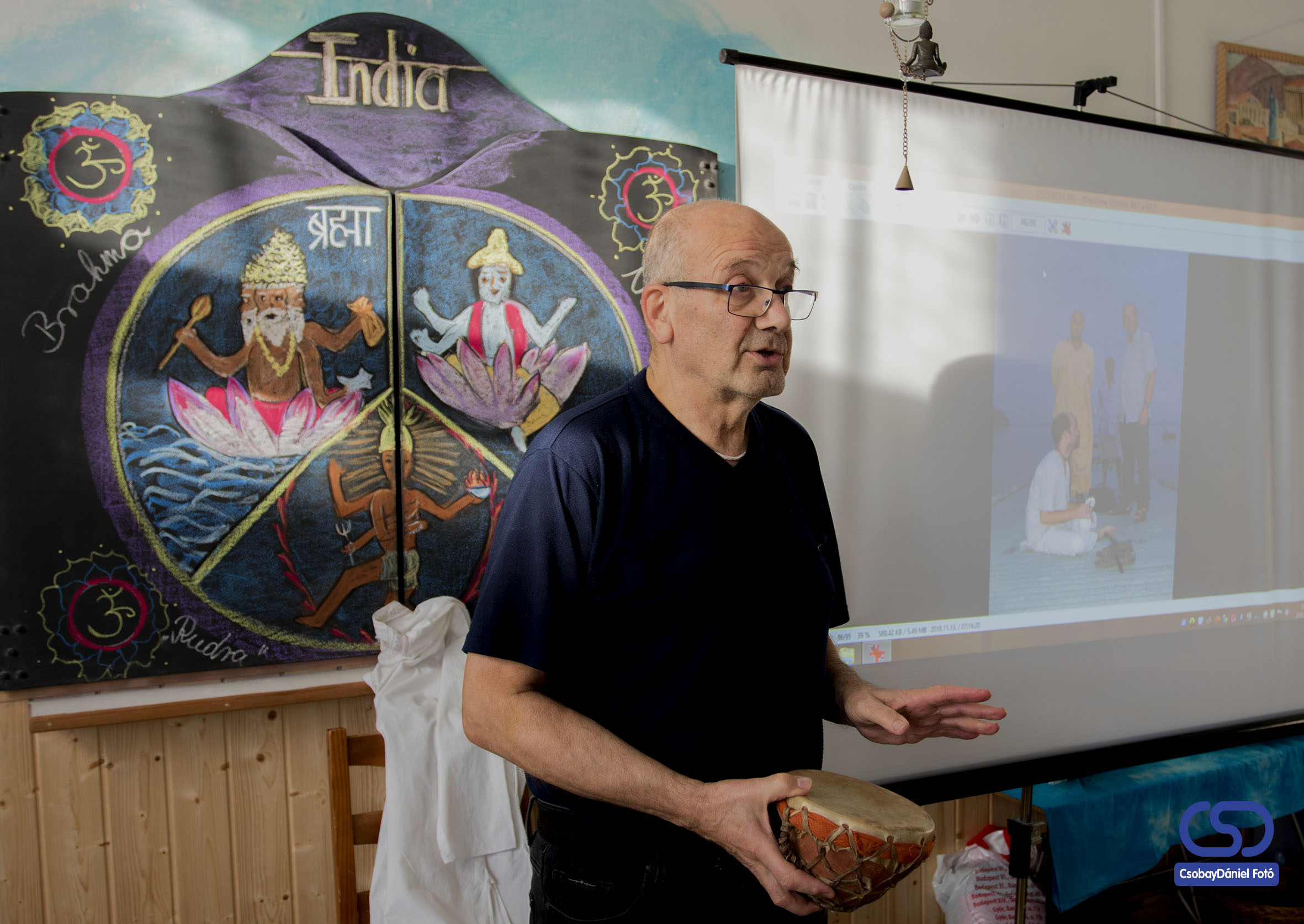 A Waldorf – módszer epochális tanítás szerint zajló, reggeli két órában tartott interaktív előadást a győri ütőtanár, aki pont az ezredfordulón, 18 évvel ezelőtt is járt az ázsiai országban kutatásokat végezni. Most minden ott szerzett tapasztalatát, élményeit a magyar népzenén és a díszítőművészetünkön keresztül mutatta be az általános iskolai gyerekeknek. „Isten gyermekei vagyunk Mindnyájan!” –mondja az Indiakutató.