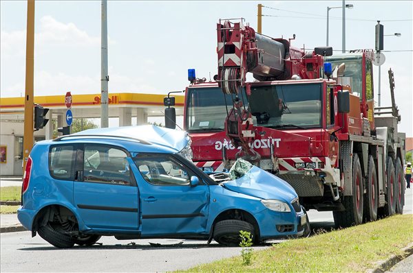 Kocsis Tünde korábban elmondta: a kevéssel dél után történt balesetben az autóba szorult egy nő, akit tűzoltók mentettek ki a roncsból, majd a mentők súlyos sérülésekkel kórházba vitték.Schreindler Ágnes, a katasztrófavédelem megyei helyettes szóvivője az közölte az MTI érdeklődésére, hogy a Komárom-Esztergom megyei Ácsra tartott az 1-es úton, megkülönböztető jelzést használva a tűzoltódaru, amikor elé kanyarodott a személygépkocsi.