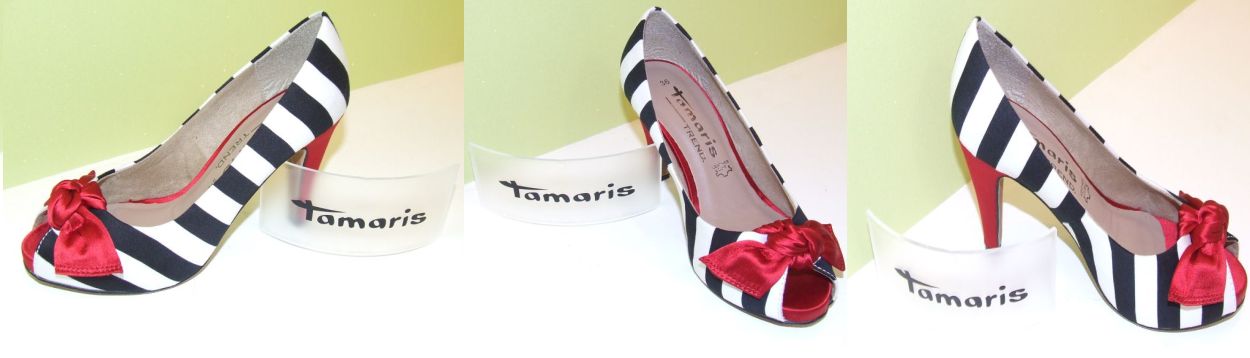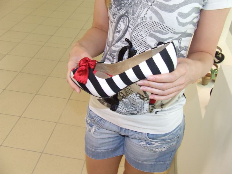 Az Eto Parkban lévő Cipőmágia üzletbe látogattunk el, valami vidám nyári cipőt keresni. Nem telt sok időbe, rögtönk kiszúrtuk a Tamaris zebracsíkos, masnis darabját.