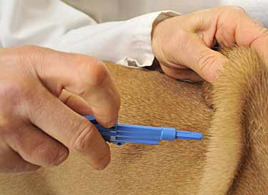 A chip nagyjából akkora, mint egy rizsszem, és a beültetése látszólag alig különbözik egy egyszerű védőoltás beadásától. A szerkezetet a nyak bal oldalán, a bőr alá helyezik. A transzpondert tartalmazó kapszula szövetbarát anyagból készül, ezért nincs káros hatással az állat szervezetére. Ritkán előfordulhat, hogy elvándorol, még ritkábban, hogy nem működik a jeladó, ezek miatt is szükséges a rendszeres ellenőrzése.