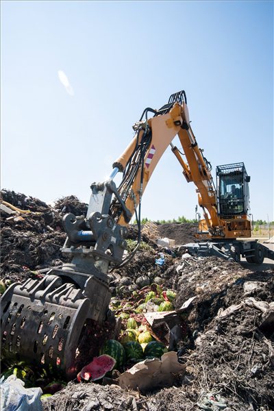 Markológép a megsemmisítésre ítélt, jelöletlen eredetű görögdinnye-szállítmányt töri össze Győrben, a sashegyi szemétlerakóban. Több mint 10 tonna jelöletlen görögdinnyére bukkantak július 16-án a Nemzeti Adó- és Vámhivatal (NAV) munkatársai a vámosszabadi határállomáson egy Szlovákiából érkező kamionban, ezért elrendelték a rakomány megsemmisítését.