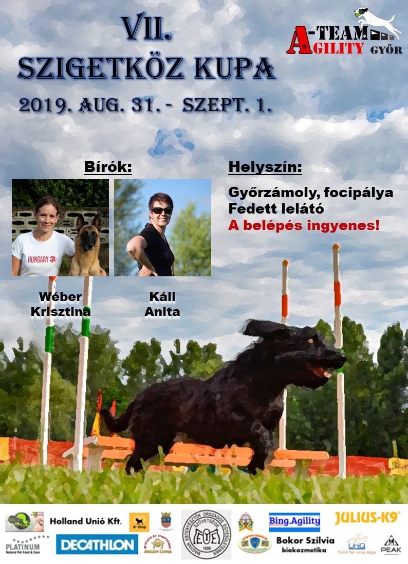 Augusztus 31 és szeptember 1. között rendezi meg az A-Team Győr Agility Egyesület a VII. Szigetköz Agility kupát, a győrzámolyi sportpályán.