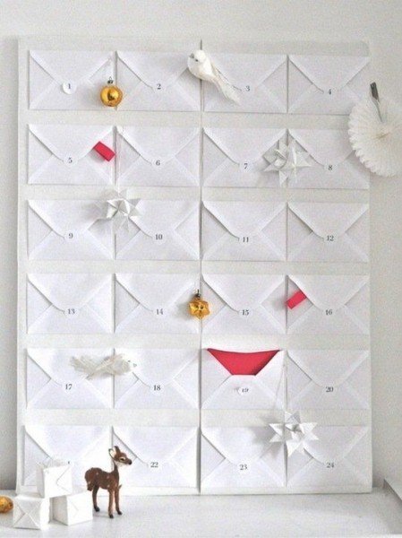 10+1:Ezt a villámgyorsan elkészíthető naptárt inkább felnőtteknek ajánlom. Minimalista lakásokba tökéletes. A borítékba egy cetlire felírt közös esti programot vagy akár fényképet is rejthetünk. Gyerekeknek pedig minden napra egy mesét (esetleg folytatásos).