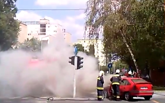 Kigyulladt egy autó a Tihanyi Árpád úton