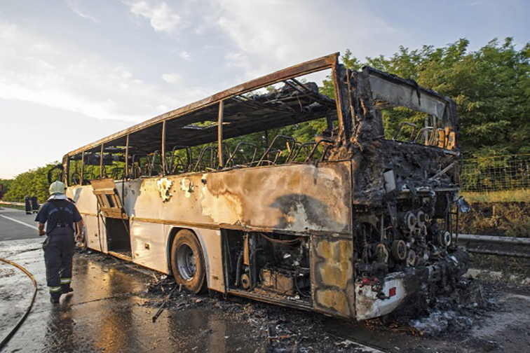 Csámpai Attila, a Pest Megyei Katasztrófavédelmi Igazgatóság szóvivője az MTI-nek elmondta, hogy a busz teljes terjedelmében égett.