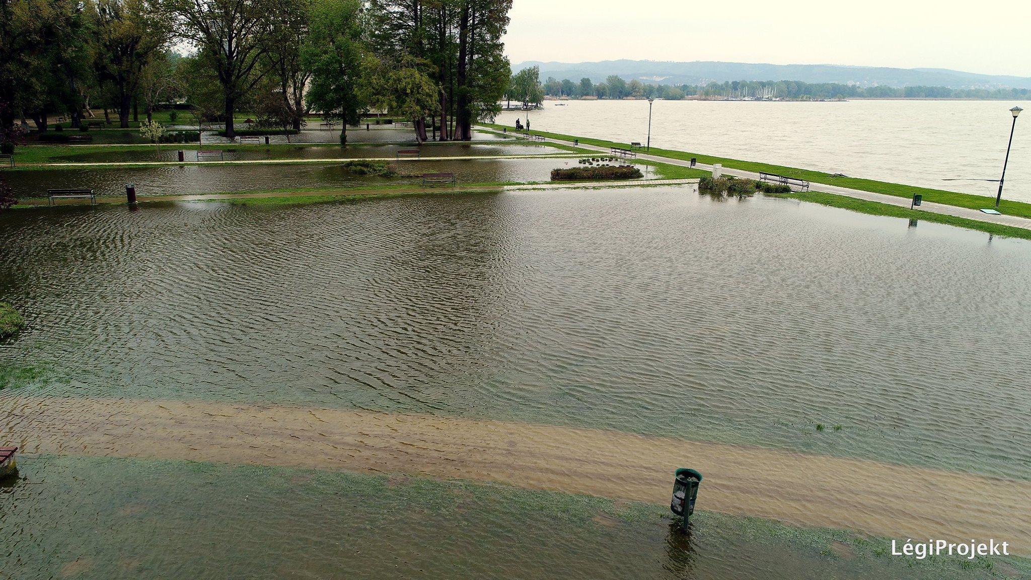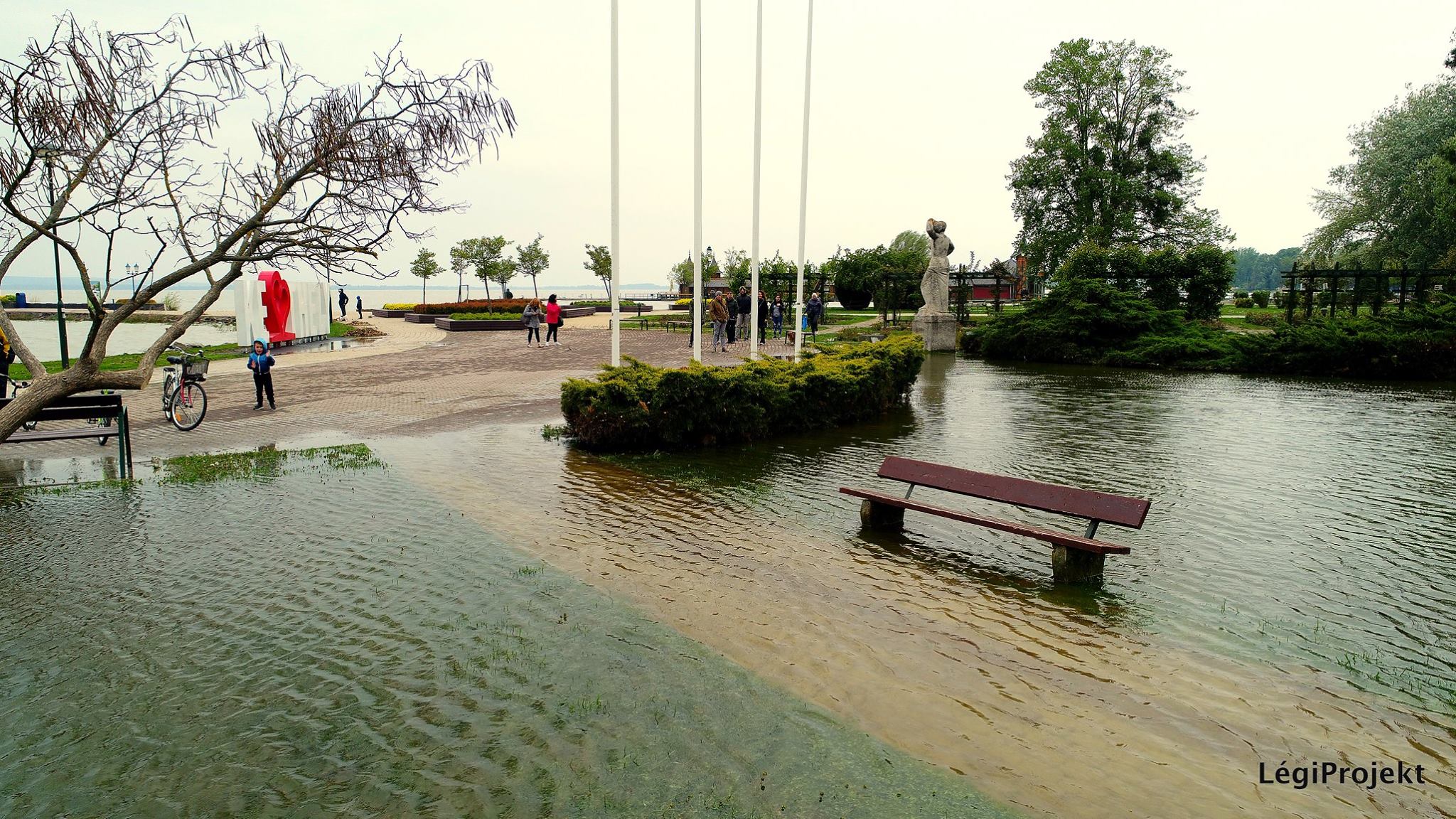 Kiöntött a Balaton Keszthelynél. A víz fákat, padokat árasztott el. A zaol.hu információi szerint a magas vízállás és az erős, viharos szél miatt öntötték el a partot a nagy hullámok.