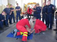 A mentőszolgálat szakemberei bemutatták a ”LUCAS” felhelyezését, először egy bábura, majd egy vállalkozó tűzoltóra. A bábun bemutatták az eszközt működés közben is, s elmondták használatának előnyeit, többek között azt, hogy a kézi újraélesztésnél elfáradhat az ember, de a gép könnyen átveheti a helyét. Az eszköz precízen ütemezve, s mélységében is pontosan végzi a „nyomásokat”. Értékes perceket nyernek azzal, hogy mialatt a beteget hordágyra helyezik, szállítják, az eszköz ezalatt is működik, folyamatosan életben tartja a beteget. Érdekesség, hogy ha lépcsőn hozzák le a sérültet, azt a megszokottól eltérően fejjel előre kell tenniük, hogy az eszköz vízszintes helyzetben maradjon a betegen, s ekkor is pontosan tudjon működni.