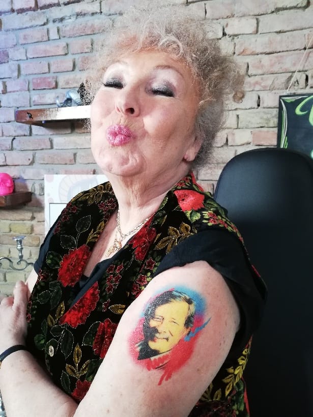 A képen Fodor Zsóka, az ország felejthetelen Magdi anyusa szerepel karján Vili bácsis tetoválással, mellyel mosolyt csaltak a rajongók arcára.