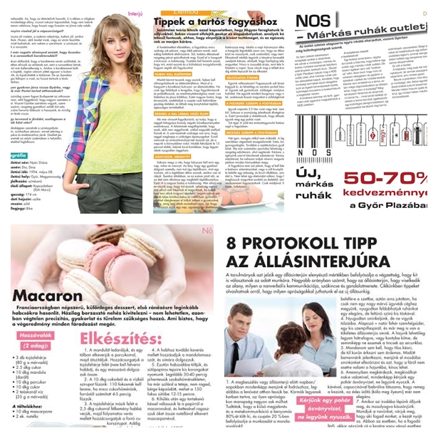 Nagy interjút olvashatunk Nyári Diával, aki már négy éve játssza a Barátok köztben, Hanna szerepét. Divat rovatunkban olvashatunk a hajhosszabbítás előnyeiről és hátrányairól. Bepillantást nyerhetünk az őszi-téli divatba is.