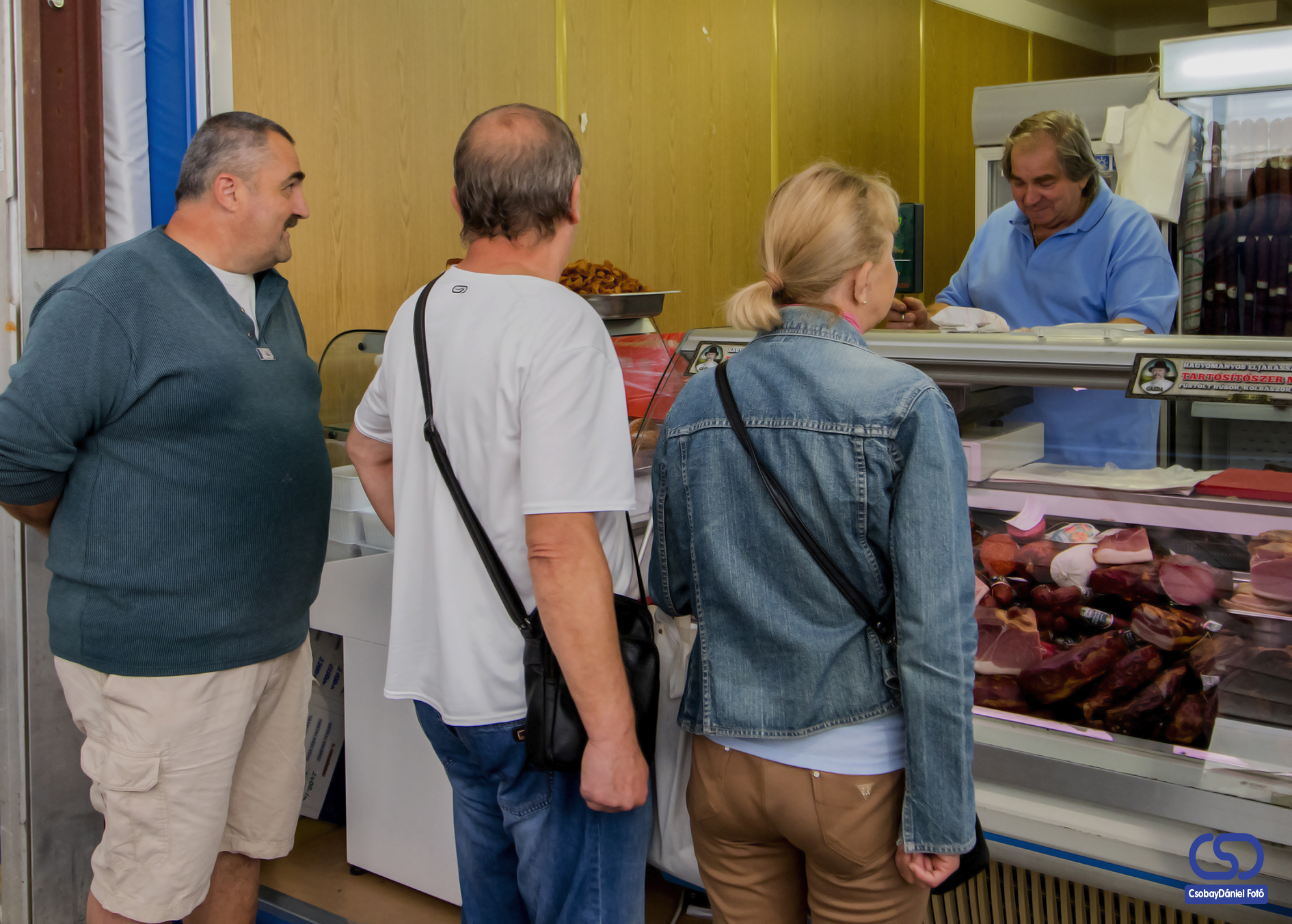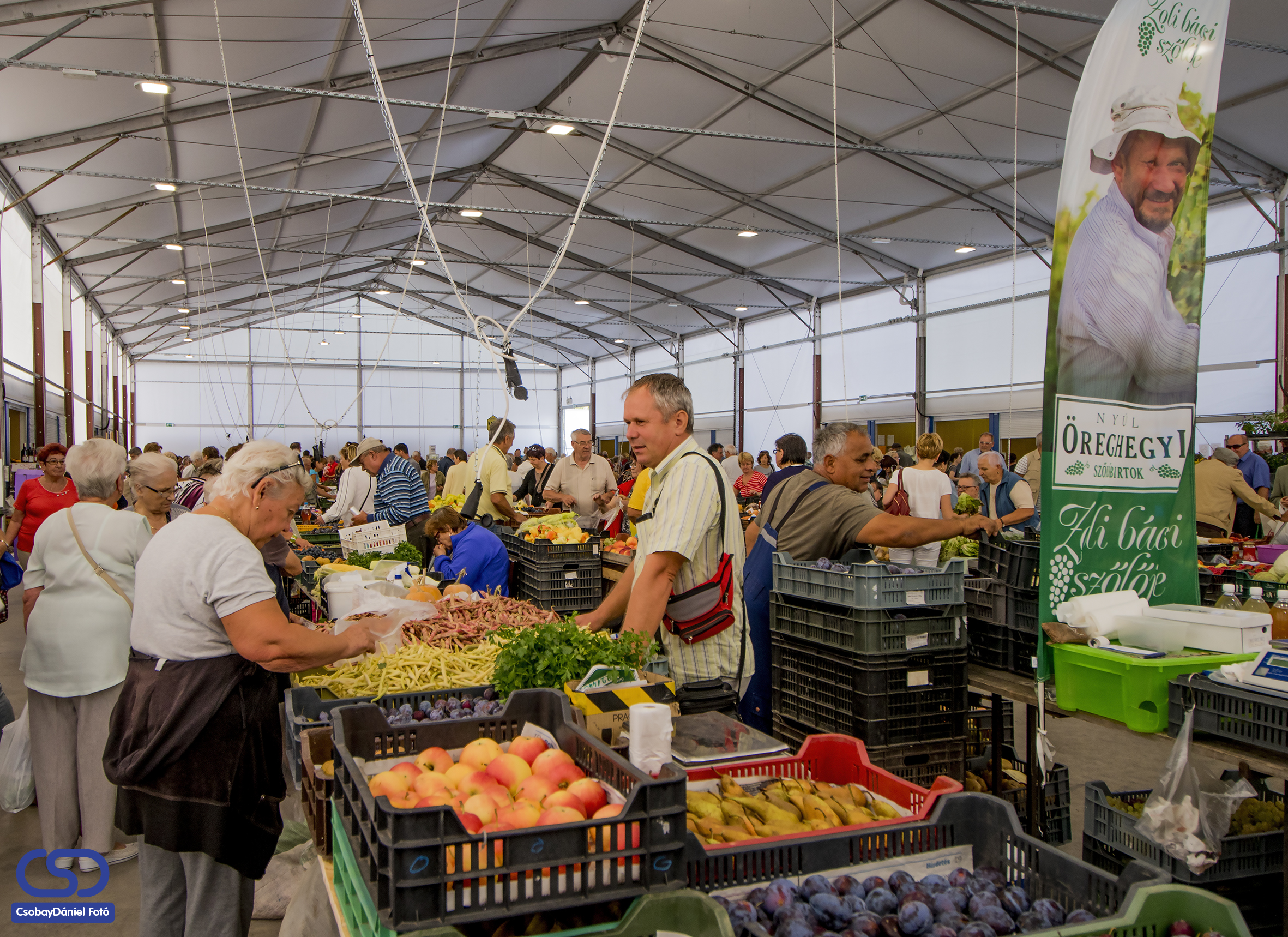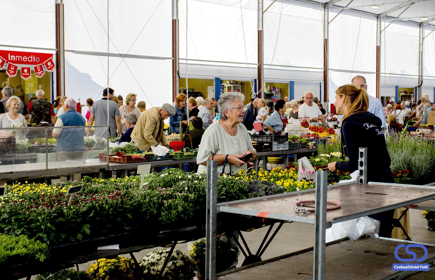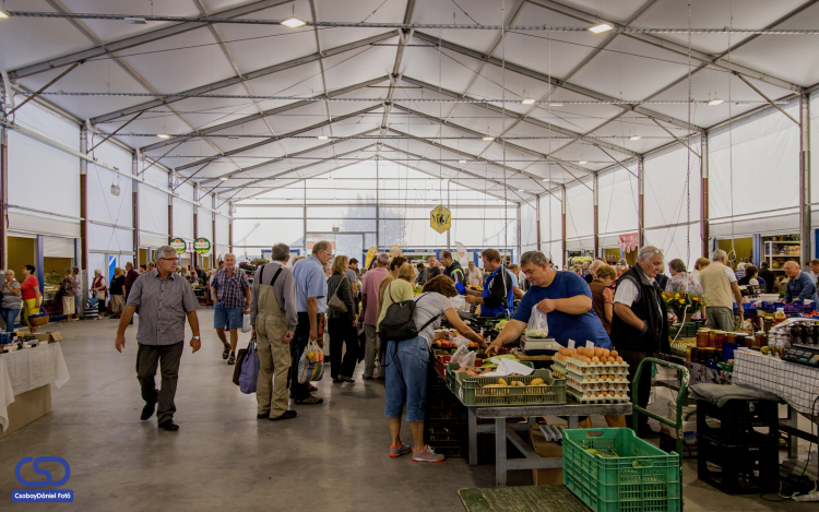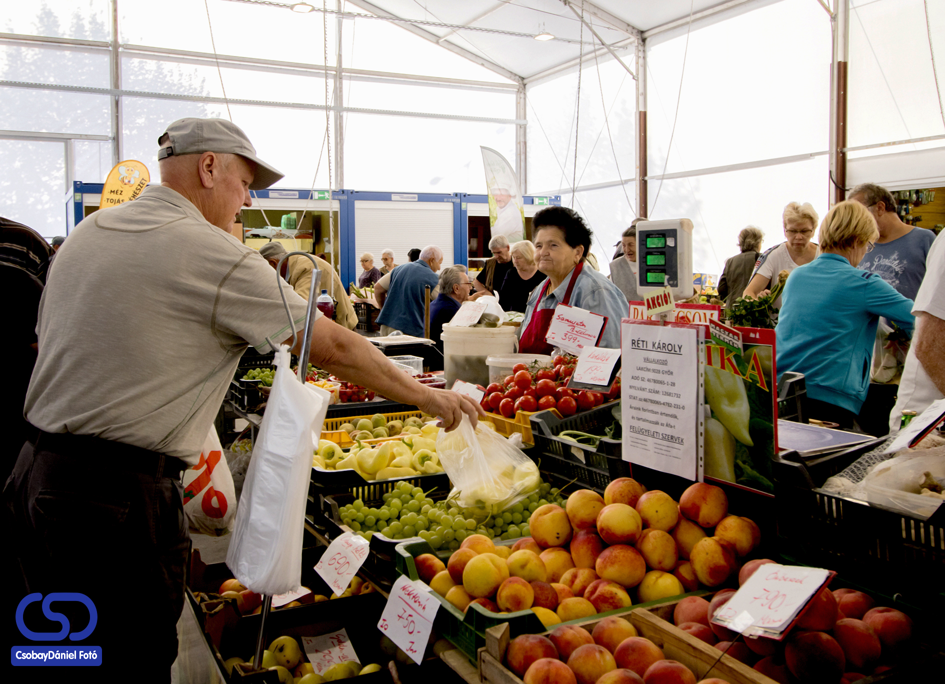 Péntek reggeli élet a Vásárcsarnok ideiglenes sátrában.