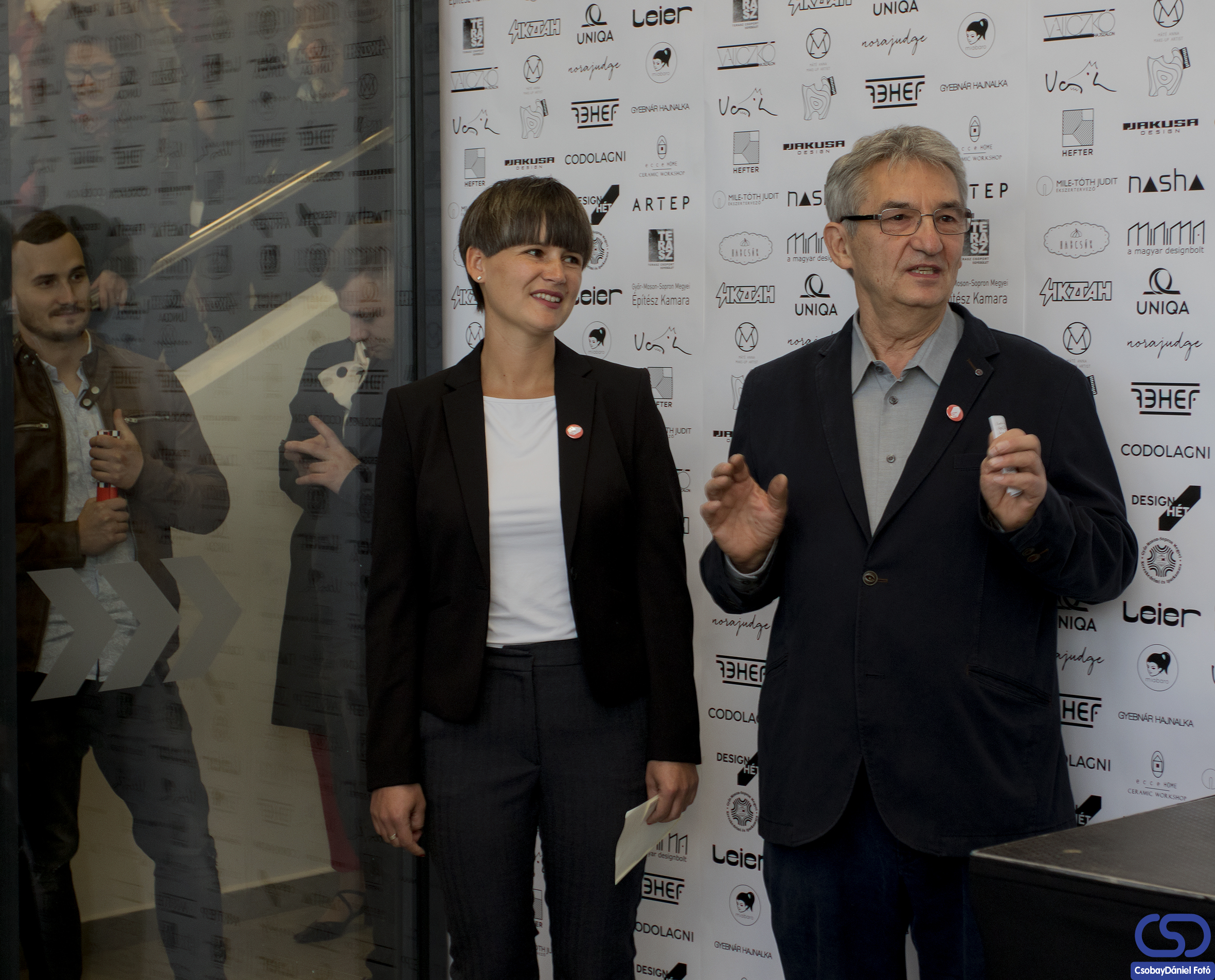 A tárlatot Hefter László, üvegművész nyitotta meg. Arról beszélt, hogy a design kiállítással Győrben is fel szeretnék hívni az ipari potenciálnak a figyelmét arra, hogy városunkban is rengeteg szellemi energia van, amely alkalmas az ipar versenyképességének növelésére és a most kiállított tárgyak nagy része alkalmas is erre.