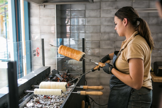 Nem véletlen egyébként, hogy a legtöbb kürtőskalácsot árusító standnál – így az Édes Mackónál is – nyitott a konyha, így láthatóvá válik a folyamat, és az is, hogyan és miből készül a finomság.