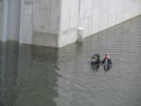 A harmadik kárhelyszínen az iparcsatorna gátja a vízoldalról szivárgott, így a mentett oldalon árvízi jelenségek jelentek meg. A búvároknak meg kellett találni a vízoldalon beomlott, az árvízi jelenségeket okozó részt. A veszélyes területet a víz alatt le kellett fóliázni, homokzsákokkal le kellett terhelni.