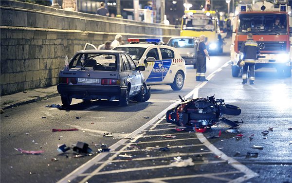 Életveszélyes sérüléseket szenvedett az a motoros, aki egy autóval ütközött össze a budai alsó rakparton szerdán késő este; az autó sofőrje is súlyosan megsérült.