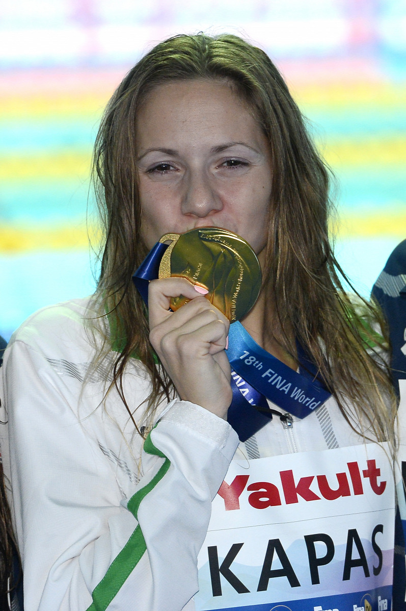 Kapás Boglárkának ez volt élete első felnőtt világbajnoki címe. Teli szájjal, csupa mosollyal, örömkönnyeket hullajtva próbálta elemezni, mi is történt abban a 2:06.78 percben.