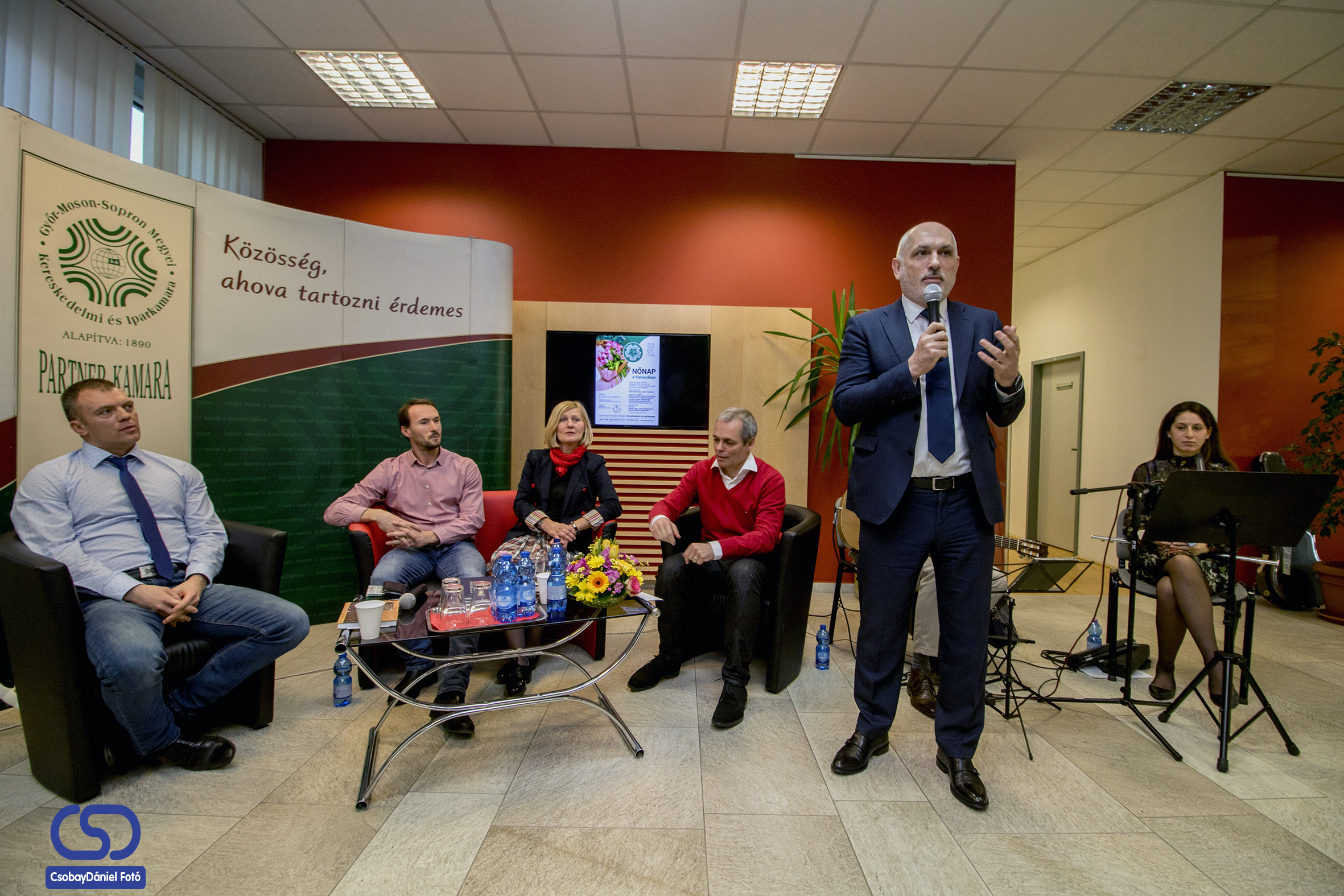 Kávéházi hangulat és a Duo Vivo - Nemes-Jeles Judit fuvolaművész és Stummer Márton gitárművész- fogadta az érkező vendégeket, majd Pintér-Péntek Imre, a Győr-Moson-Sopron megyei Kereskedelmi és Iparkamara elnöke mondott köszöntőt.