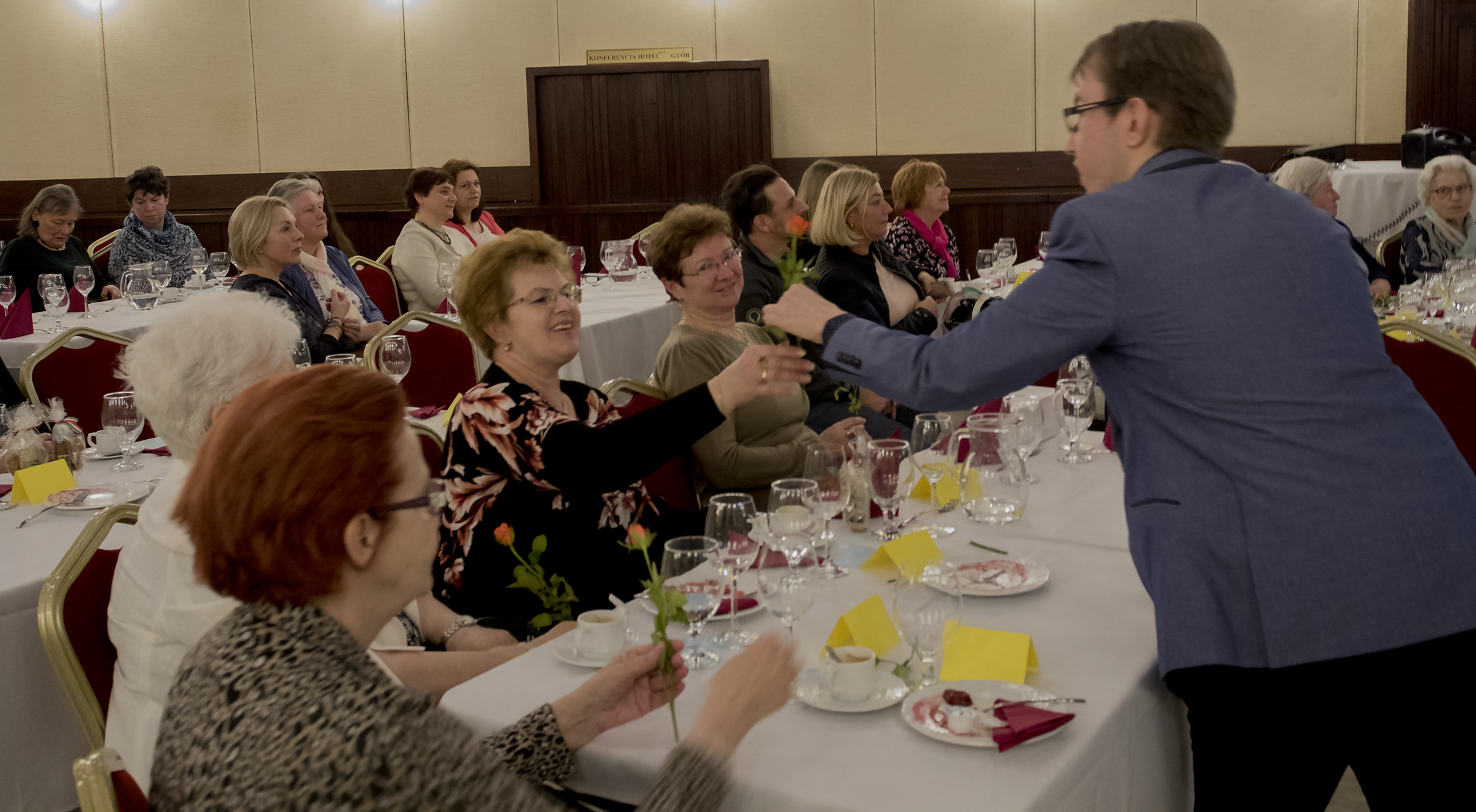 Csobay Dániel, a Nőnap alkalmából virággal köszöntött minden hölgy vendéget.