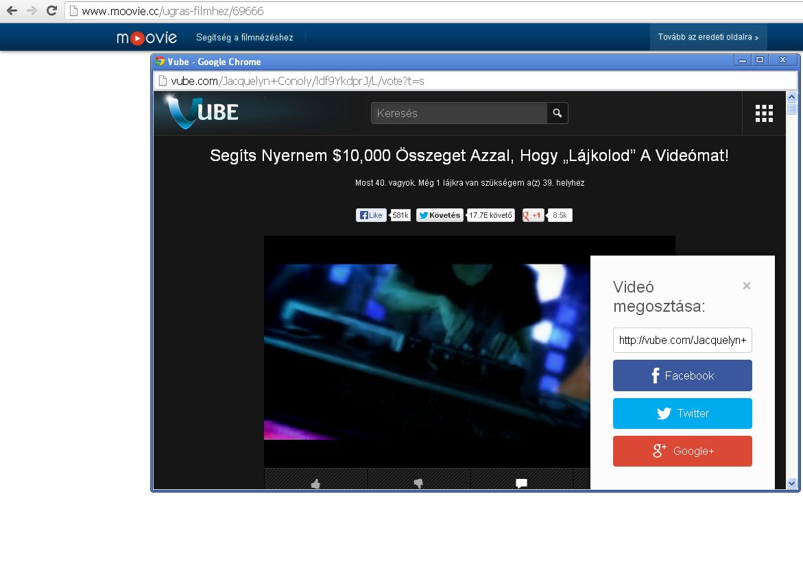 A második amikor felugró ablak formájában megjelenik valami, lehet az fogadási oldal, stb.. és ezek közül is ami a legjobban kiüti a biztosítékot az a Vube videomegosztó reklámja, ahol valaki arra kér lájkoljam az adott videót, hogy segítsek neki 10.000 dollárt nyerni, automatikusan elindul a videó, a legkülönfélébb zenékkel, klippekkel.