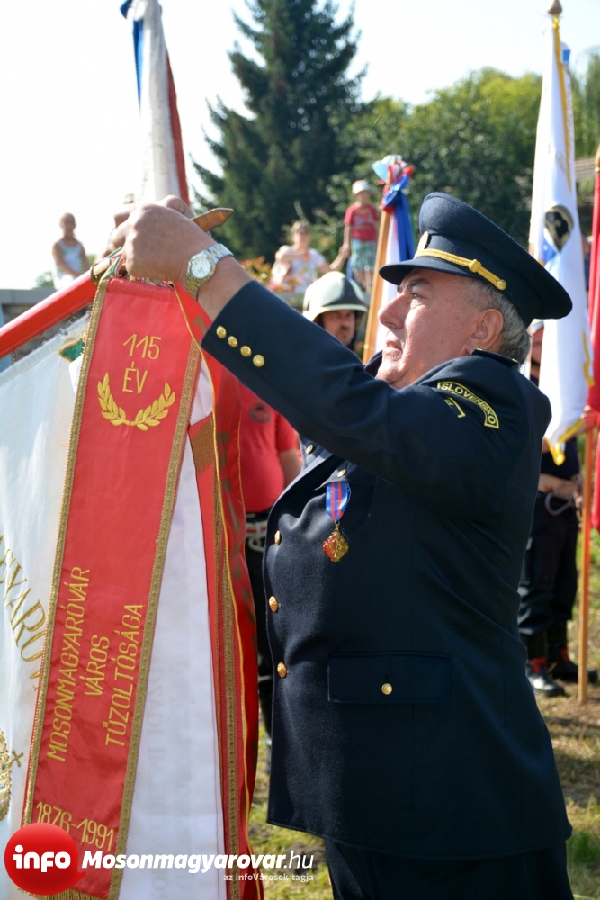 A rendezvényen Sallai Péter tűzoltó dandártábornok, a Győr-Moson-Sopron Megyei Katasztrófavédelmi Igazgatóság igazgatója a BM OKF főigazgatójának ajándékát is átnyújtotta, majd a Mosonmagyaróvári Katasztrófavédelmi Kirendeltség vezetője, Szilágyi János tűzoltó alezredes tartott ünnepi megemlékezést. A megemlékezés után az oroszvári tűzoltóság és a megyei katasztrófavédelmi igazgatóság zászló szalagot adományozott, s kötött fel a Mosonmagyaróvári Hivatásos Tűzoltó-parancsnokság csapatzászlajára a jubileum alkalmából.