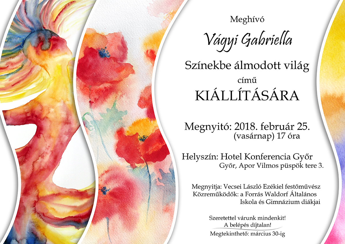 A kiállítást Vecsei László Ézékiel festőművész nyitja meg. Közreműködnek a győri Forrás Waldorf Általános Iskola és Gimnázium diákjai. A tárlat 2018. március 30-ig díjmentesen megtekinthető.