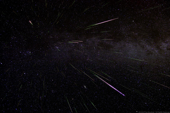 Egy fantasztikus felvétel a 2005-ös Perseida-maximum idején készült, és két éjszaka alatt felvett 3555 felvétel összegzéséből született. Nagyjából 160 rajtag látható rajta. (Fred Bruenjes felvétele)