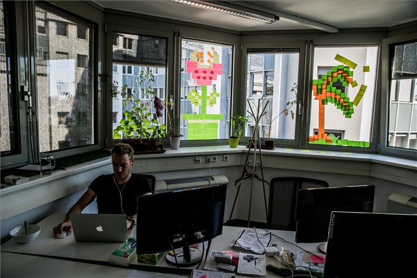 Post-it lapokkal üzennek egymásnak két irodaház dolgozói Budapesten