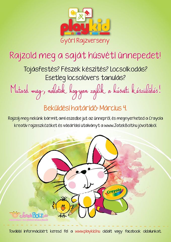 A győri PlayKID rendezvény kapcsán a PlayKID rajzversenyt hirdet a húsvéti készülődés jegyében.