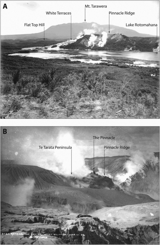 A történelmi vulkánkitörést követő három nap múlva viszont mind a teraszok, mind az akkori Rotomahana tó eltűnt a katasztrófa nyomán keletkező kráterben, amely idővel feltöltődött vízzel, és egy új tavat hozott létre a régi helyén.