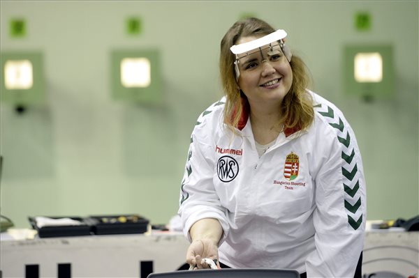 Győr, 2016. február 26. Csonka Zsófia Európa-bajnok sportlövő a légpisztoly versenyszám hivatalos edzésén a 10 méteres sportlövő Európa-bajnokságon Győrben 2016. február 26-án.