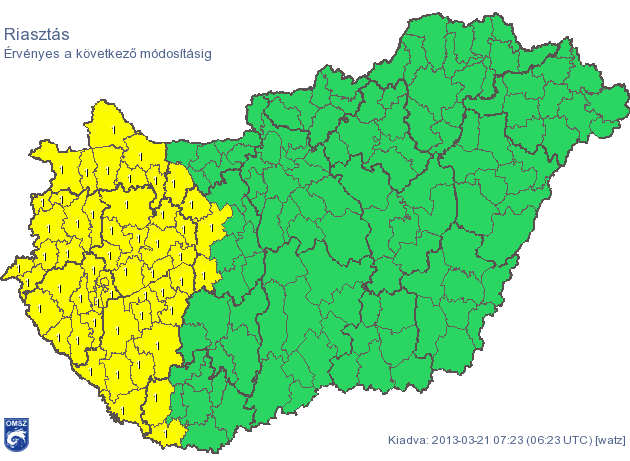 Csütörtökre ismét több megyére adott ki figyelmeztetéseket az Országos Meteorológiai Szolgálat a várható jelentős mennyiségű csapadék, az erős szél, illetve hófúvás miatt. Péntekre az erős hófúvás miatt az ország északkeleti csücskére már másodfokú figyelmeztetések is érvényben vannak.