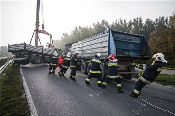 Az MTI tudósítója a helyszínen azt tapasztalta, hogy több kilométeres sor torlódott fel a Szigetközt átszelő egyetlen, 1401-es számú úton, ahol egy személyautó és két kamion ütközött.Dobos Viktória, a katasztrófavédelem megyei szóvivője korábban jelezte: a tűzoltóknak a roncsokból kellett kiszabadítaniuk egy embert, őt átadták a mentőknek.