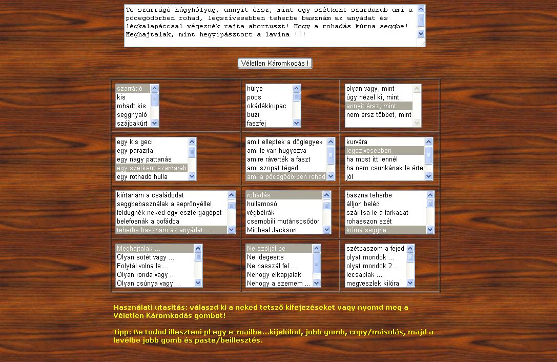 Egy újabb gyöngyszemet találtam. Az oldal nem más mint a Káromkodásgenerátor!