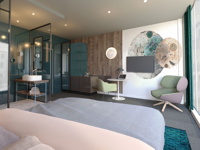 A magas színvonalú, személyre szabott szolgáltatást kínáló szállodában a szobabelsőket a természet ihlette, a miliőt dizájnbútorok, élénk színek, meglepő megoldások teszik különlegessé. Az üvegfalú, nyitott fürdőszobák és az egész falat betöltő ablakok, erkélyek levegőssé teszik a hangszigetelt falakkal elválasztott szobákat.