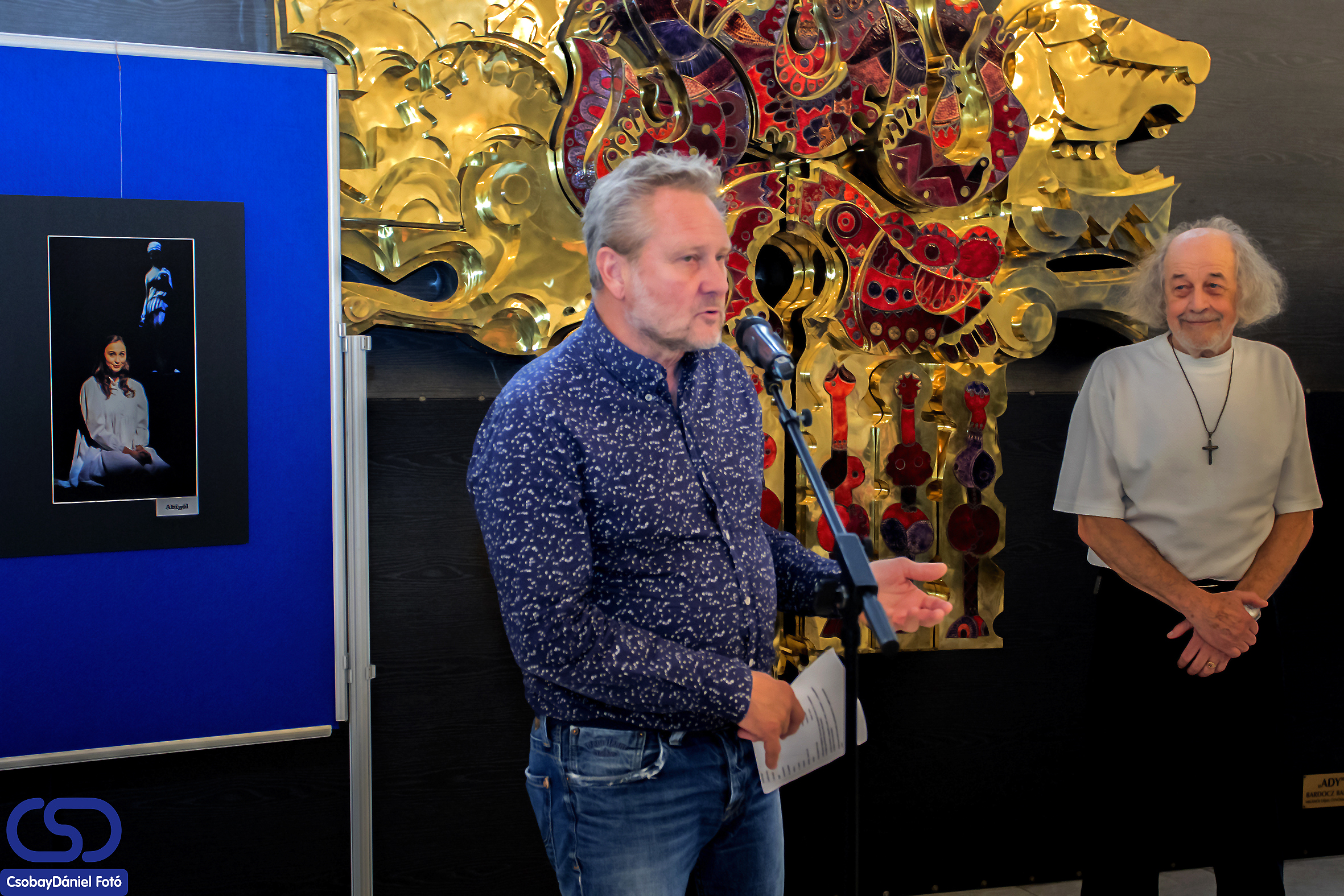 A zene után Forgács Péter- a Győri Nemzeti Színház igazgatója nyitotta meg a tárlatot, majd rendhagyó tárlatvezetésre hívta az érdeklődőket a képek között.