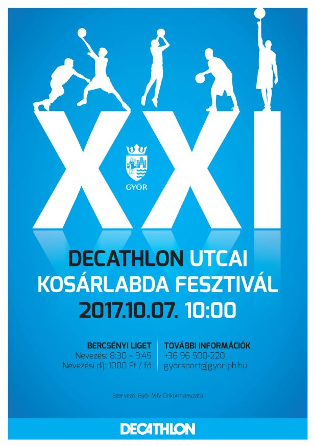 Szombaton, 2017.október 7-én rendezi meg Győr Megyei Jogú Város Önkormányzata a XXI. Decathlon Utcai Kosárlabda Fesztivált a győri Bercsényi Ligetben.