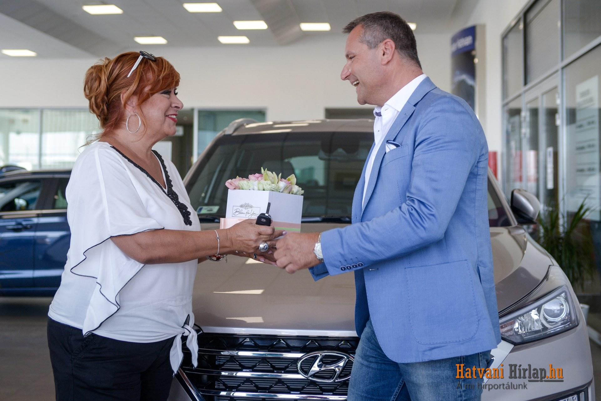 A művésznő már korábban beleszeretett a Hyundai Tucson típusú autóba, melyet a hatvani szalon egy sajátos konstrukció keretein belül az énekesnő rendelkezésére is bocsátott kedden.