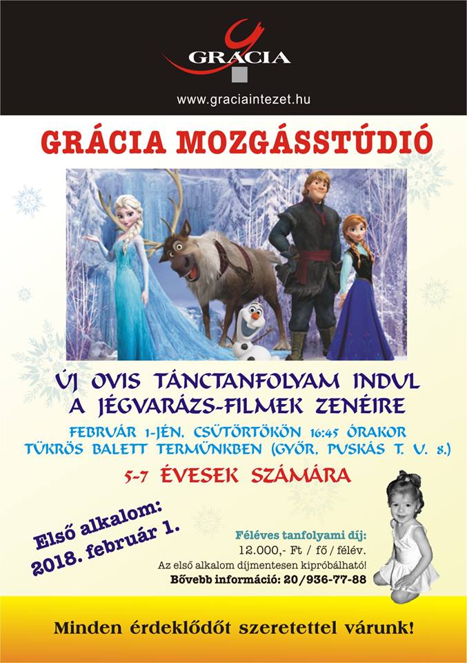 Ma, csütörtökön, 16: 45-től tánctanfolyam indul a Jégvarázs- filmek zenéire a Grácia Mozgásstúdióban.